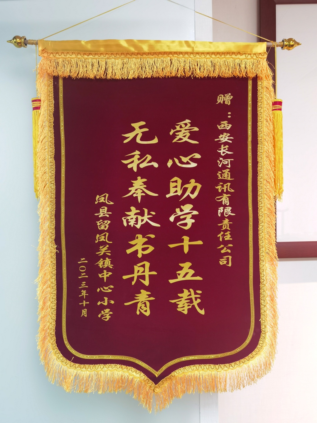 最后,為了感謝多年來的幫助,李校長代表留鳳關(guān)小學(xué)全體師生獻(xiàn)上錦旗:“愛心助學(xué)十五載,無私奉獻(xiàn)書丹青”,他表示,我們的資助不僅給予了孩子們物質(zhì)上的幫助,更讓他們感受到了社會的溫暖和關(guān)懷,激發(fā)了他們努力學(xué)習(xí)、回報(bào)社會的決心。